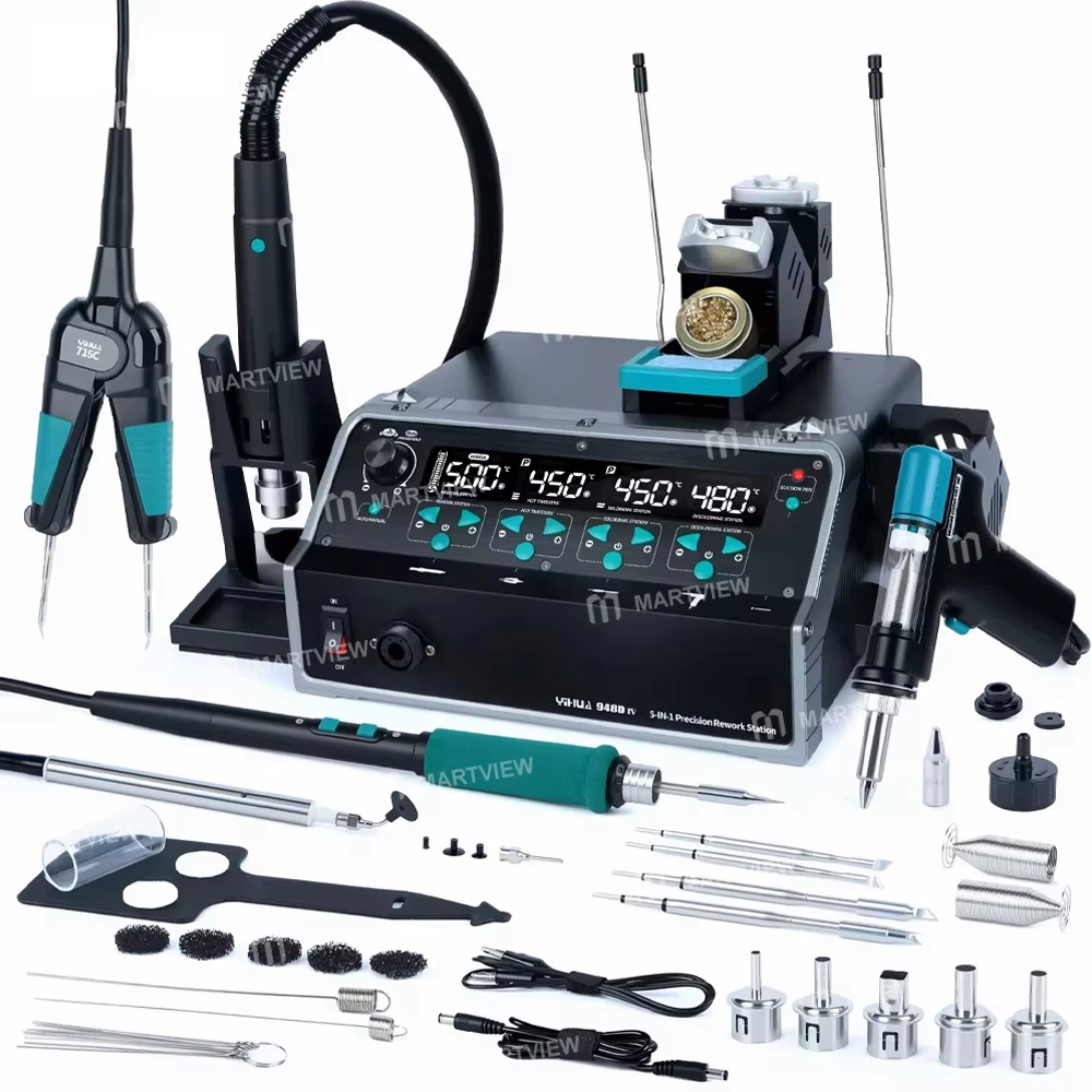 Yihua 948D-IV 1410W 5-in-1 Hot Air Gun + C245 Soldering Iron + Tweezers Iron + Suction Tin Gun Rework Station
